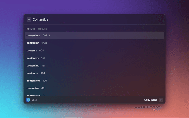 Struggling to spell a word? With this Raycast extension, even with typos, you can type the word and receive a list of matching suggestions using the OneLook API.