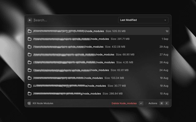 • Quick Deletion: A simple action to delete selected node_modules folders.