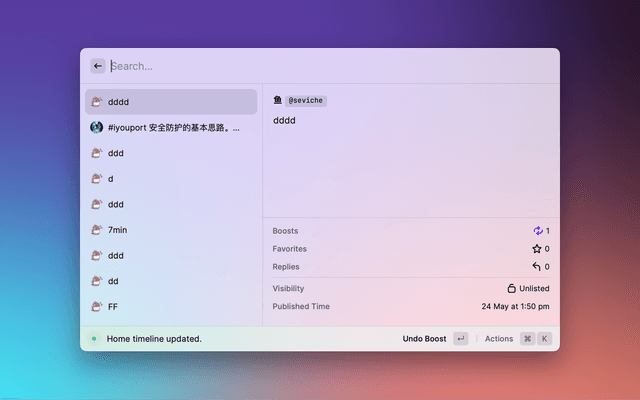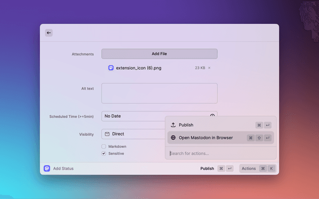Publish status from Raycast to Mastodon, and view your bookmarked status