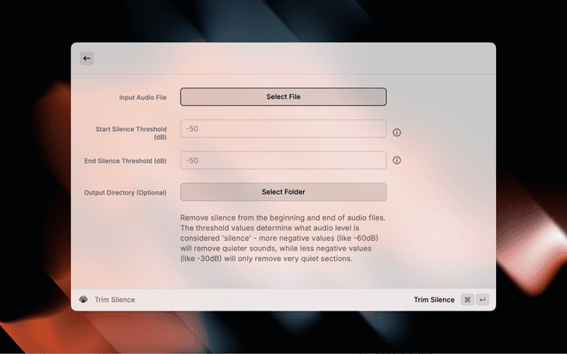 • βœ‚οΈ Audio Enhancement - Silence trimming, fade effects, volume adjustment