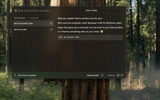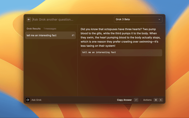 - Query Grok: Send questions to Grok AI and receive responses powered by models like