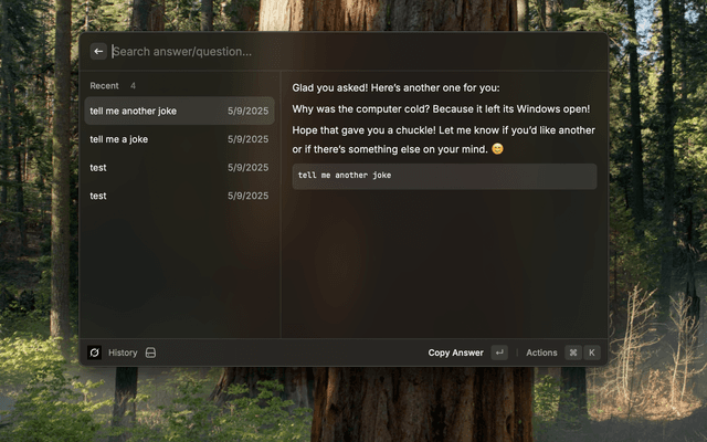 Props to the ChatGPT Raycast extension team for some of the functions and design choices / UX on here. Built with Grok.
