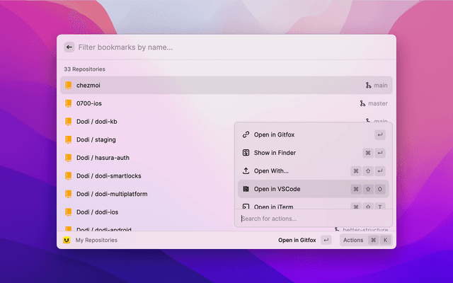Navigate and open your repositories in Gitfox.