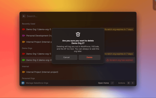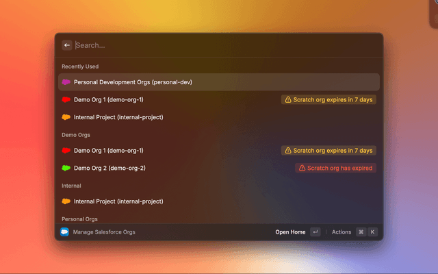 MultiForce is a Raycast extension that lets you save all of your Salesforce environments and quickly log in. This is the ultimate tool for developers and Salesforce admins who work in multiple Salesforce environments, solving business problems with clicks, code, and curiosity.