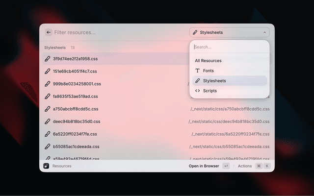 - Font detection (Google Fonts, Adobe Fonts, Bunny Fonts, Fontshare, Fonts.com, Font Awesome, custom)