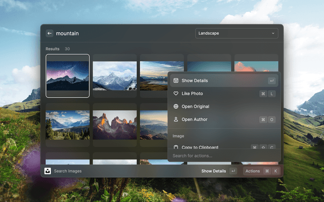 A Raycast extension that lets you communicate with Unsplash's API and gives you access to some functions.