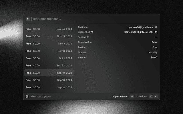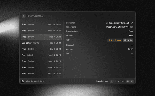 Manage all your Polar products, sales & analytics within Raycast