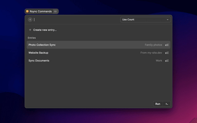 Save your commonly used rsync commands in one place and run them with ease.
