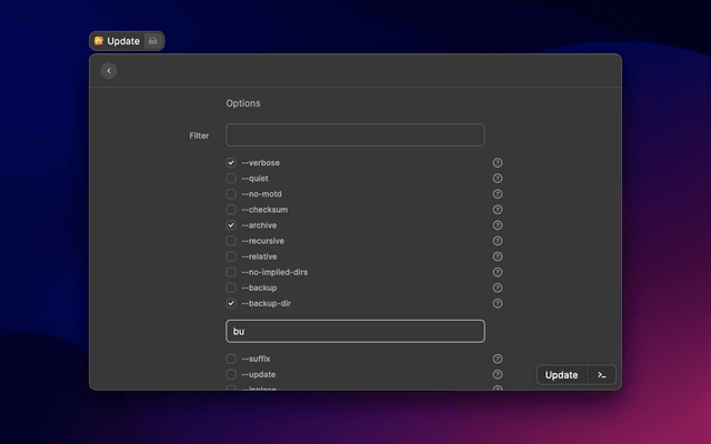 Save your frequently used rsync commands and run them with ease.