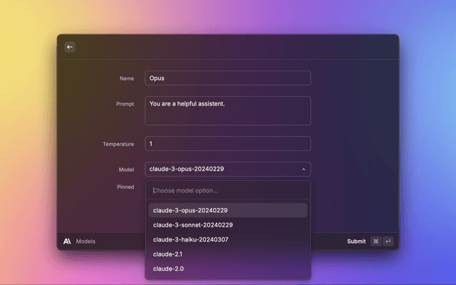 All preferences properties list that can be customize through Raycast Settings > Extensions > Claude