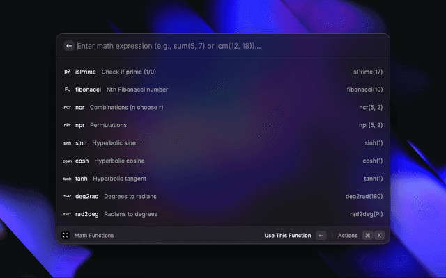 1. Open Raycast and search for "Math Functions"