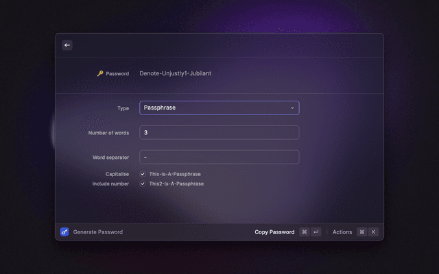 🔎   Search your vault   📋   Copy and paste any field   🔑   Generate passwords and TOTP codes   ⭐   Mark items as favorites