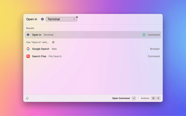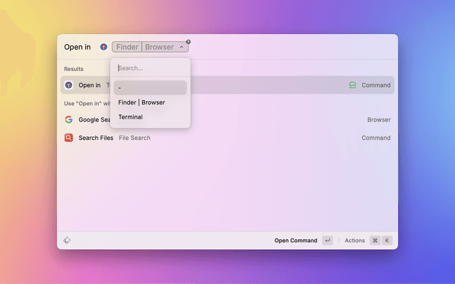 • If the top app is not the Finder, it will automatically detect path or link from selection or clipboard and open it in default app (path in Preferred Terminal, url in browser , email in Mail).