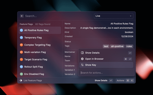 • ⌘ + ↵ Copy feature flag key to clipboard