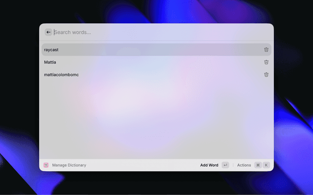 Manage DictionaryView, add, and delete custom dictionary words