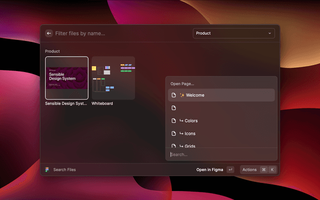 Lists Figma files allowing you to search and navigate to them.