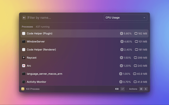 Terminate processes sorted by CPU or memory usage