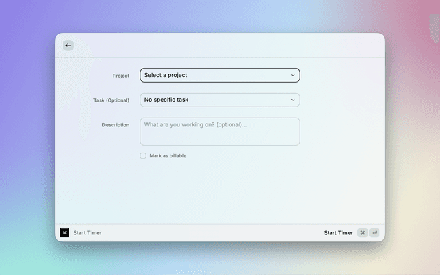 • Edit Timers - Modify existing timer entries (start/end times, project, task, description)