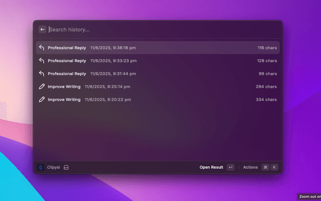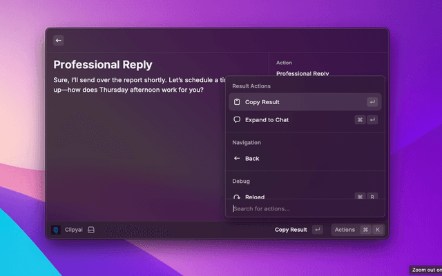 A powerful Raycast extension that brings AI-powered clipboard enhancement to your workflow. ClipyAI seamlessly integrates with OpenAI's GPT models to help you process both text and images directly from your clipboard.