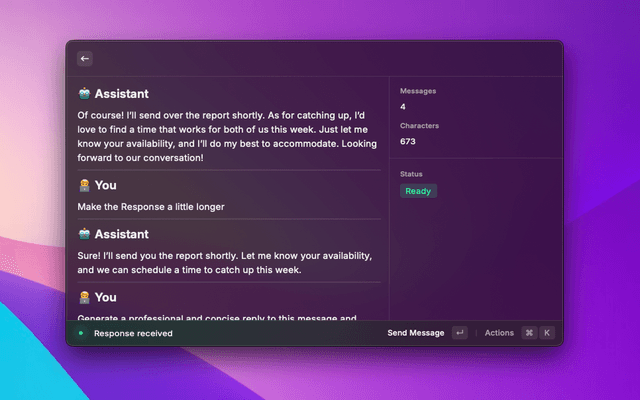 • ⌘ + Enter - Copy Last Response in Chat Menu