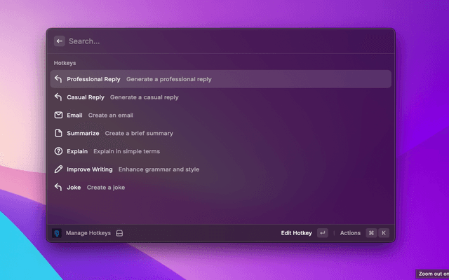 • Access from: Main Menu ⌘ + K > Manage Hotkeys