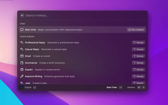 • 💬 Interactive Chat: Start conversations with your clipboard content