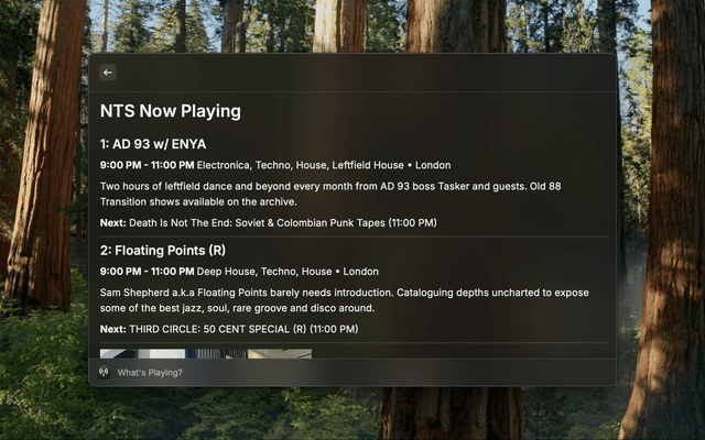 Shows the currently playing NTS Radio shows