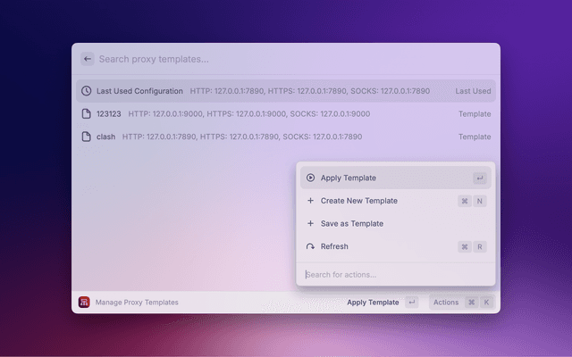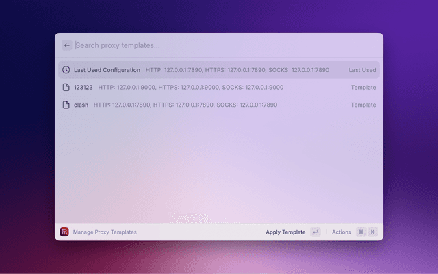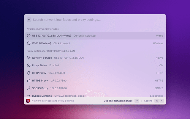 A simple Raycast extension for managing macOS network proxy settings.