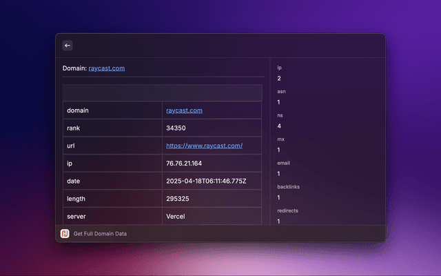This is an extension for Host.io - A Powerful and Fast Domain Name Data API.