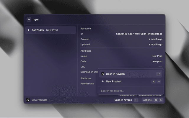 This is a Raycast extension for Keygen - Open, enterprise-grade licensing & distribution. With this extension you can: